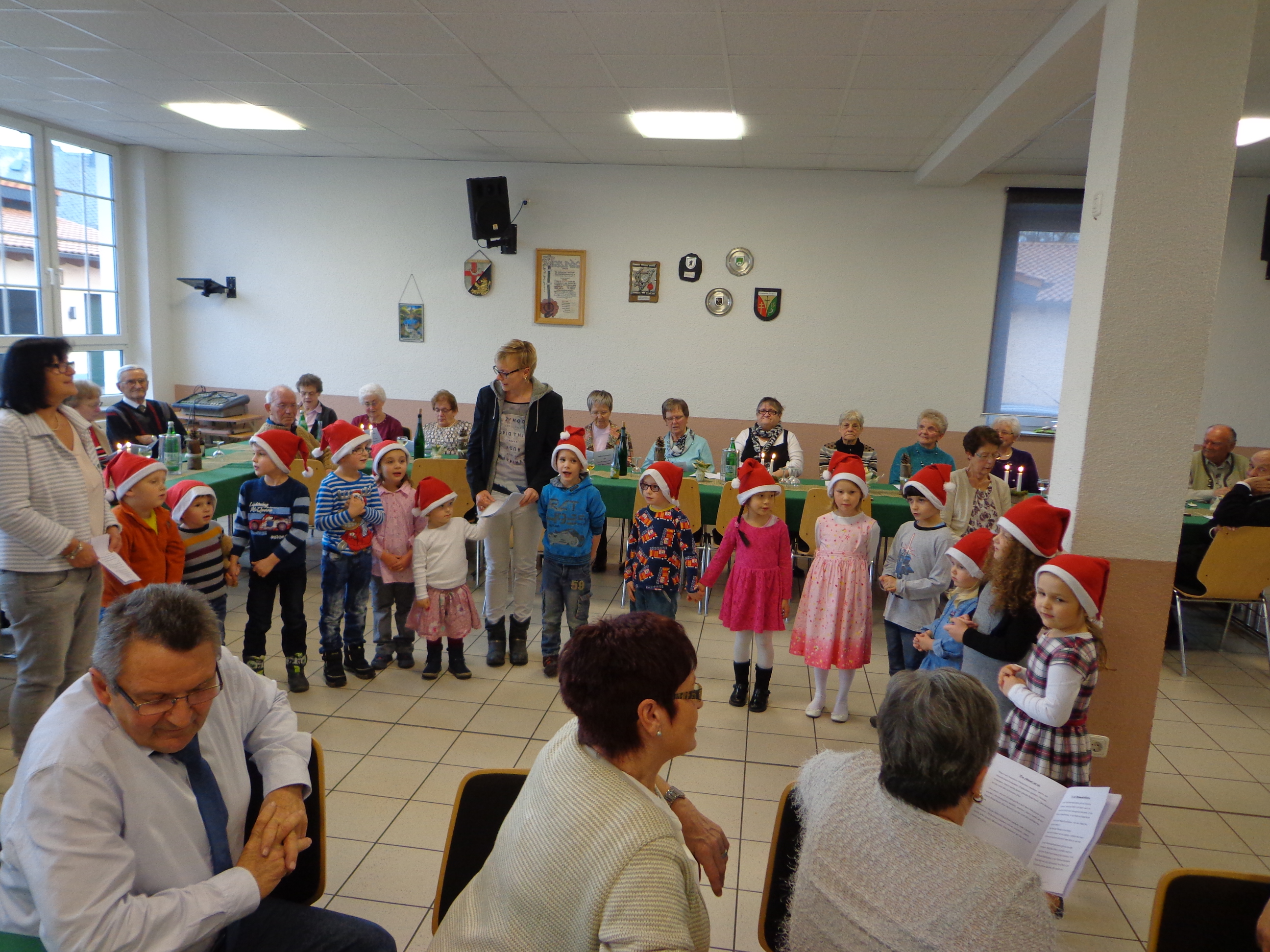 1 Advent, der Seniorentag der von Ortsgemeinde finanziert wird, stand auf dem Programmpunkt. Der Nachmittag begann mit einer kurzen Adventandacht gestaltet von der Andacht WeGe, oder auch Hallelujaclub genannt. Ortsbürgermeister Schneiders informierte bei der Begrüßung über Aktivitäten und Daten im Gemeindeleben. Nach einem etwas anderen Gedicht „Gleichgewicht auf Gottes Erde“ gab er freien Lauf zum Kuchenbuffet. Die jungen Frauen „Dippers“ hatten wieder tollen Kuchen gebacken, und so konnte der Genuss beginnen. Dann kamen auch schon die Kleinsten der Gemeinde und unsere Kindergartenkinder trugen mit Hilfe der Erzieherinnen schöne Lieder vor. Es ist immer schön der Unbefangenheit der Kinder, die alle in Blickrichtung von Mama orientiert sind, zu zuschauen und zu hören. Entspannung gab es kaum, denn draußen stand schon der Kirchenchor. Bekannte und beliebte Lieder wurden unter Leitung von Kai Hömann vorgetragen. Zeit um einen guten Wein zu genießen und für eine kleine Unterhaltung bringen die Sänger/innen, zur Freude der Senioren, auch immer mit. Dann ging es mit Anbruch der Dunkelheit himmlisch weiter. Der Nikolaus (Lothi) mit jungem Engel (Iwona) kam mit einem Wagen voller Weihnachtstüten zum Fest. Wie gewohnt pointiert und einer passenden Bemerkung überreichte er allen Anwesenden die Tüte. Nach so viel Programm ging es dann so langsam nach Hause. Ein harter Kern ließ nicht locker und es wurden noch einige Weine probiert und „Alte Lieder“ gesungen. Trotz einiger falscher Töne - kam wohl vom Wein- war es ein schöner Abschluss. Herzlichen Dank an alle die mitgeholfen haben besonders an die Dippers für die Kuchen, die Bedienung mit Verwöhncharakter und die Vorbereitung mit dem Schmücken des Raumes.